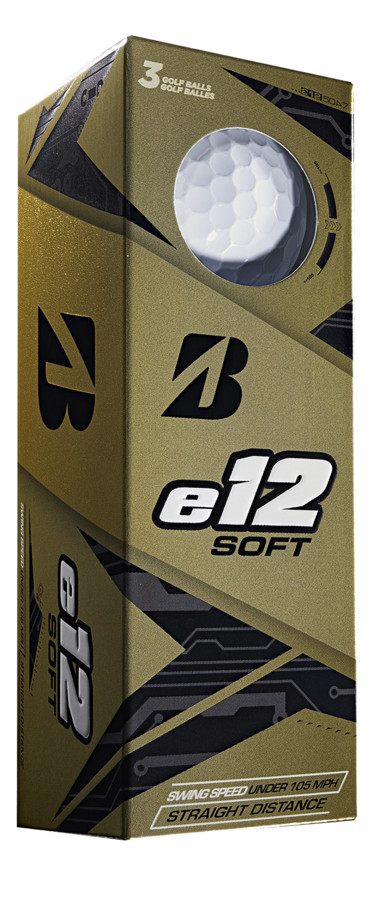 The e12 SOFT utilizes Bridgestone’s patented Delta Wing Dimple pattern for less drag and smoother airflow when the ball is in flight. The enhanced aerodynamics increase the straight distance properties of e12 SOFT.