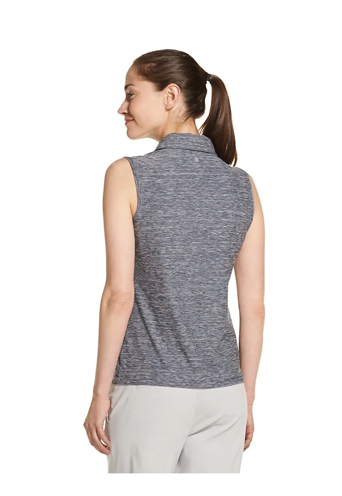 Add feminine appeal to your next golf outing with this sleeveless polo shirt in a heathered knit. SwingFlex technology offers comfortable stretch with every swing, while moisture-wicking properties and built-in UPF-15 keep you dry and safe throughout each round.