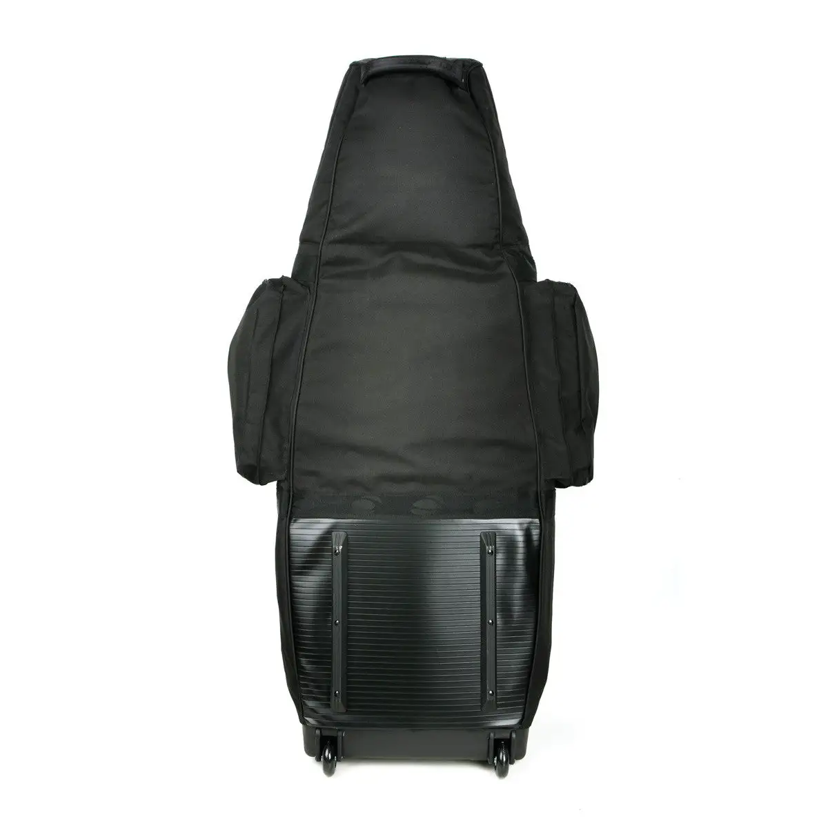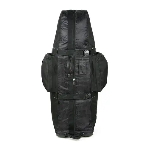 Orlimar 9.0 Premium Golf Travel Cover with Wheels feature durable 600 denier material, molded chassis with corner skate-style wheels for a smooth roll, riveted four-point lift handle, bumpers, heavy-duty large-tooth zippers, large external shoe pocket, padded club-protection top and identification holder.