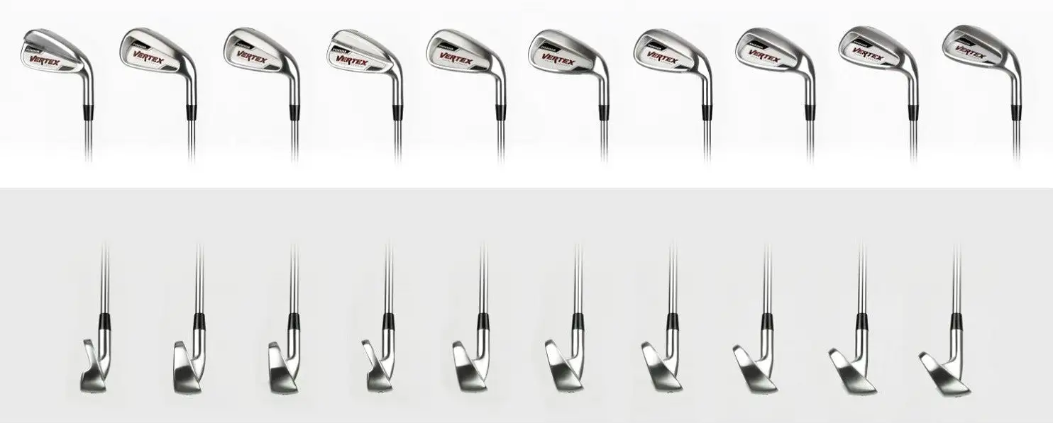 The technology used in the lower lofted club in each of the two Vertex lengths (the 3 iron being the lowest lofted club of the long irons, and the 6 iron being the lowest lofted club of the short irons) is necessary for correct distance gapping across the entire set. |