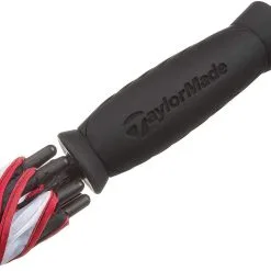 Single canopy umbrellas are useful for providing weather protection. The black and white TaylorMade 60″ Single Canopy Umbrella features logos on the two panels and a manual spring mechanism to open. The interior has vibrant red fiberglass ribs. The handle is made for comfort with textured, contour rubber grip that is ergonomically correct.