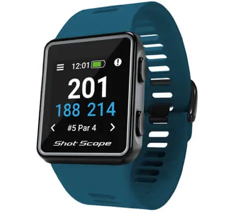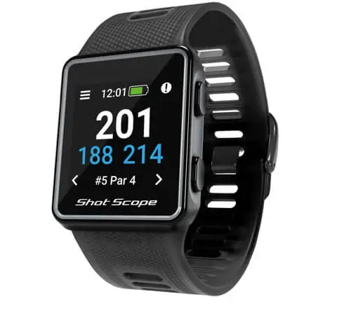 The Shot Scope G3 is a GPS watch that displays F/M/B distances to greens and hazards