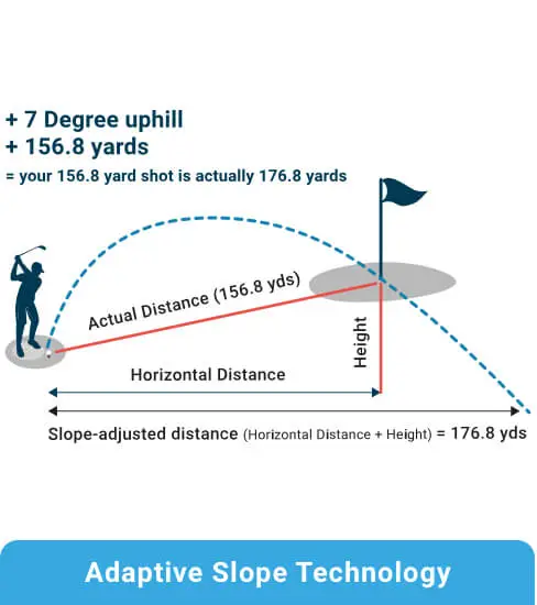Our advanced slope technology accurately adjusts to your distance, taking the up and down hills into account, to allow for better club selection. On PRO L1 flick the switch to turn slope on or off.