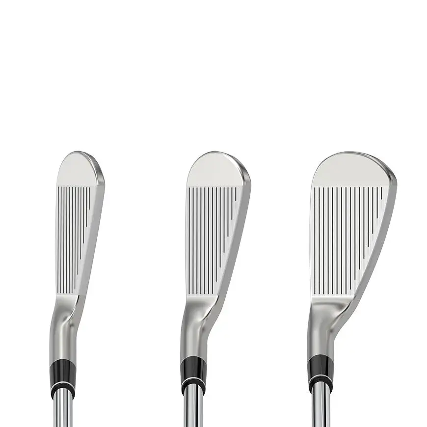 The 3i–7i feature wide grooves, ideal for longer shots in all conditions. The 8i–PW have deeper, closer-set grooves which cut through grass and debris to enhance spin on approach shots. Laser milling between each groove, on every loft, enhances friction in all conditions.