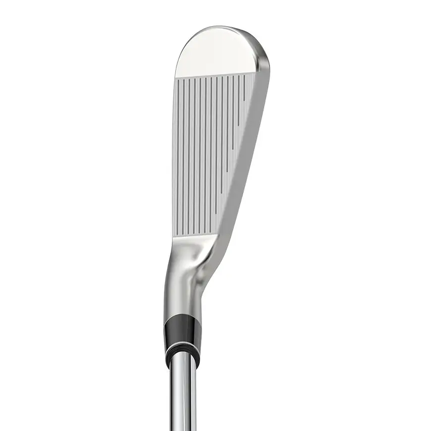 The 3i–7i feature wide grooves, ideal for longer shots in all conditions. The 8i–AW have deeper, closer set grooves which cut through grass and debris to enhance spin on approach shots. Laser milling between each groove, on every loft, enhances friction in all conditions. The result is congruency across the set, as spin, distance, and launch window remain as consistent as possible.