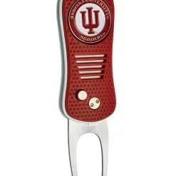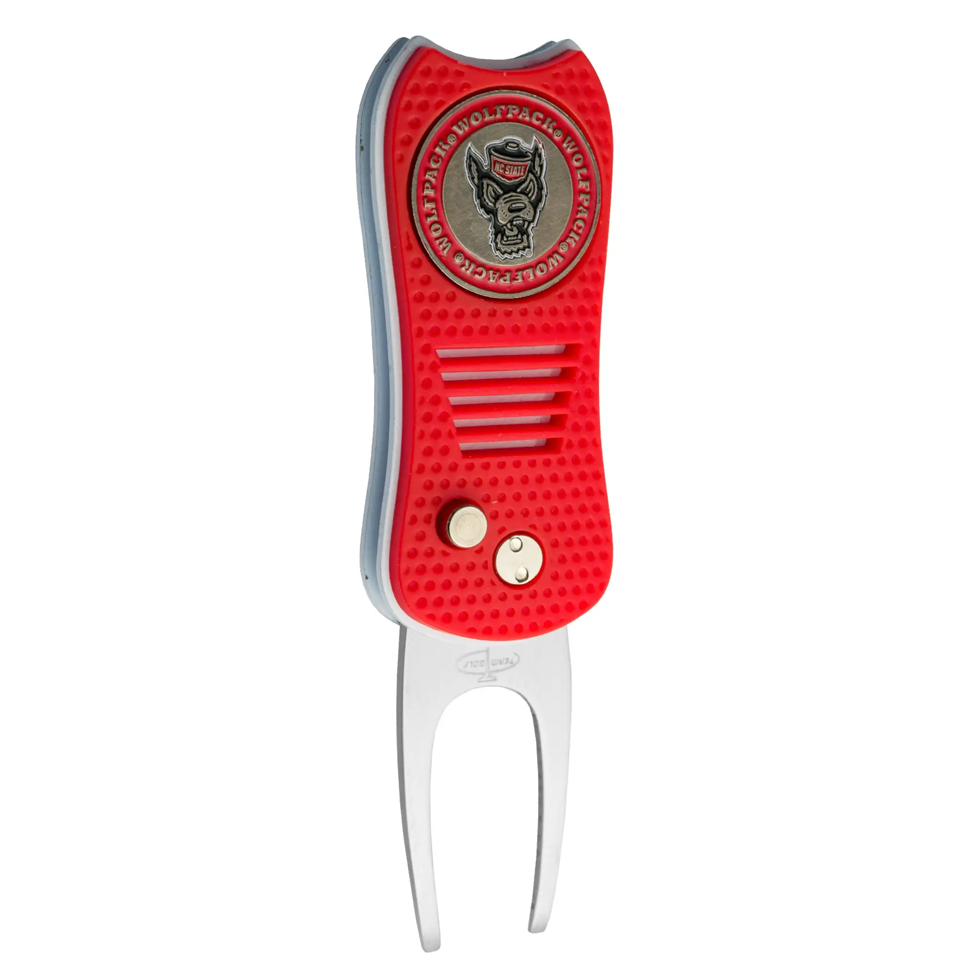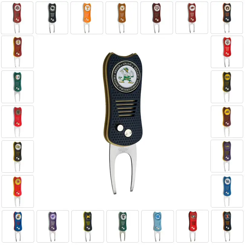 Keep the greens as true as your team pride with the Team Golf® Switchfix Divot Tool. Lightweight aluminum blades quickly and easily repair ball marks on the green while minimizing damage to the surface. A switchblade-style mechanism simplifies use while allowing for safe storage while the tool is not in use. The soft grooved handle and double-sided magnetic ball marker ensure your team spirit is easily visible.