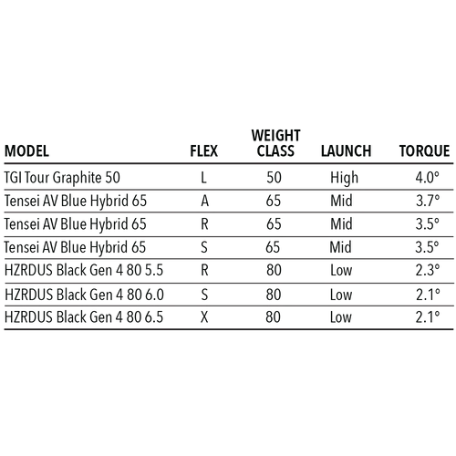 No Upcharge Custom Shaft Specs: