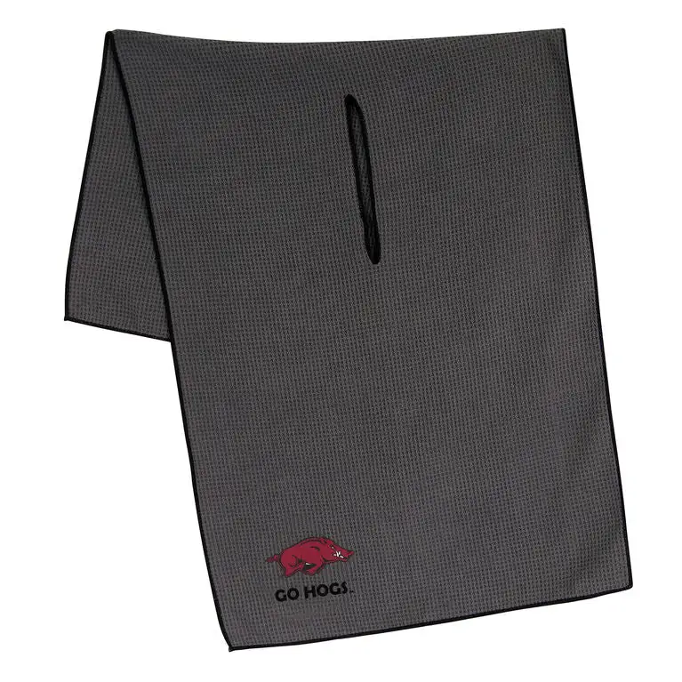 Add a flash of team spirit to your golf accessories with the NCAA Microfiber Golf Towel. Constructed of soft material, this towel features a waffle weave design to ensure efficient debris removal without damage to the club finish. Soft and durable 19″ x 41″ waffle weave microfiber towel cleans without scratching club finish. Large enough to keep part of the towel wet and part of the towel dry. 8″ center slit fits easily over clubs. Embroidered collegiate trademark.