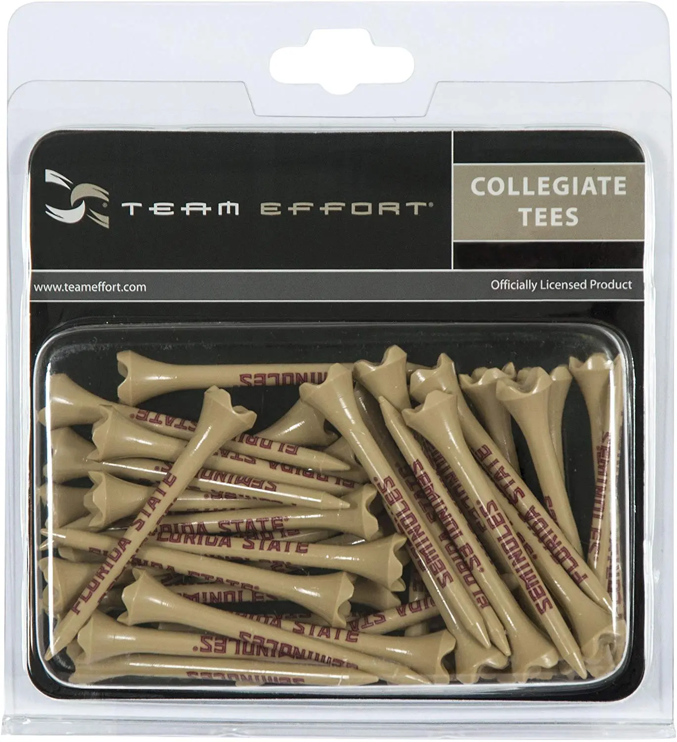 Start each hole with your team pride on display while using Team Effort golf tees. Suitable for use with oversized clubs, each golf tee measures 2.75” and features a durable construction to enable multiple uses. The 4-prong design minimizes club head resistance as you drive through the ball. Eye-catching team colors and printed trademarks show unmistakable team spirit.